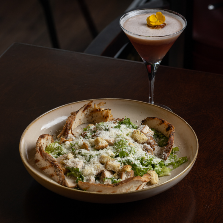 Lettuce, smoked chicken, parmesan cheese, croutons and caesar dressing.